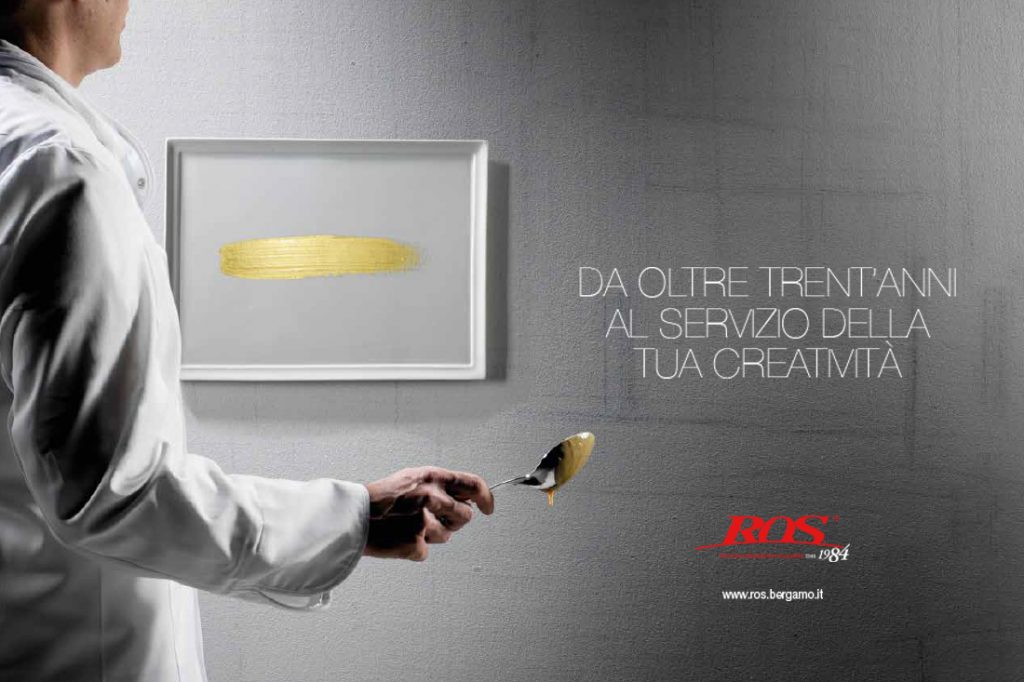 Questo il presupposto che ci ha portato ad immaginare lo chef in una galleria d’arte, con un cucchiaio in mano che gronda ancora di salsa, lo sguardo rivolto al piatto su cui ha appena dato il suo tocco decorativo.