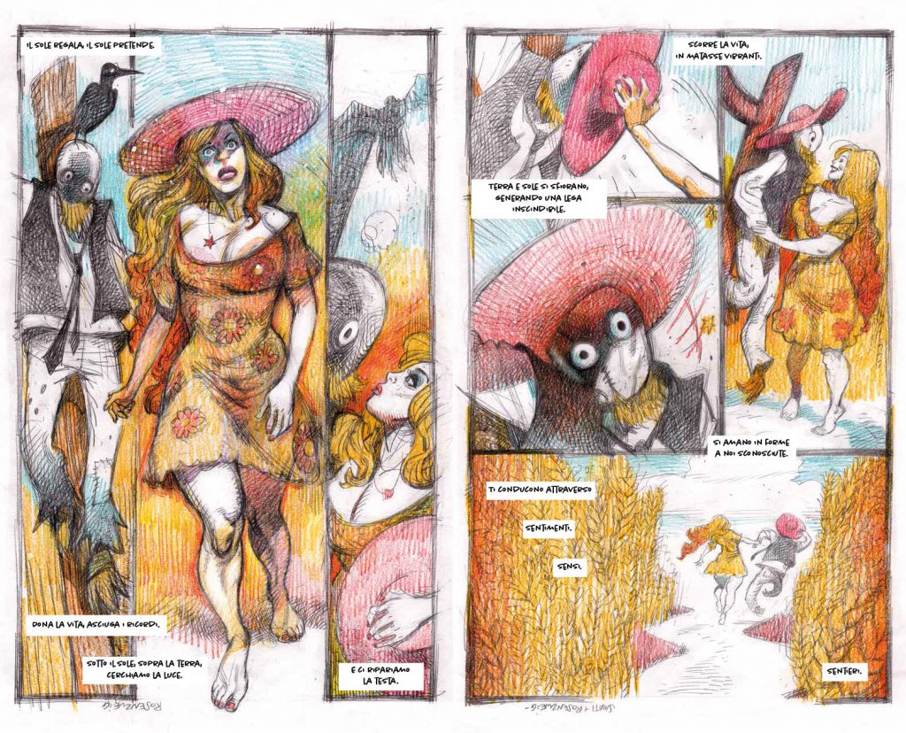 Il progetto creativo che abbiamo proposto, e che è stato colto con entusiasmo dal Turin Palace Hotel, ha previsto la collaborazione di artisti del calibro di Giorgio Salati, Ariel Vittori Art, Maurizio Rosenzweig, Sergio Gerasi, Giulia Argnani Artwork. Quattro piatti vengono interpretati dall’estro creativo dello sceneggiatore e direttore artistico Giorgio Salati, e tradotti in tavole d’autore dai quattro fumettisti. Ciascuna opera, permettendo di decontestualizzare ogni portata dal suo ruolo, guida il commensale in un viaggio in cui il cibo diviene strumento di evocazione ed occasione di narrazione: attraverso una rivisitazione inattesa del valore degli ingredienti che compongono il piatto, il food storytelling, supportato dal segno grafico, apre così nuove strade alle emozioni.