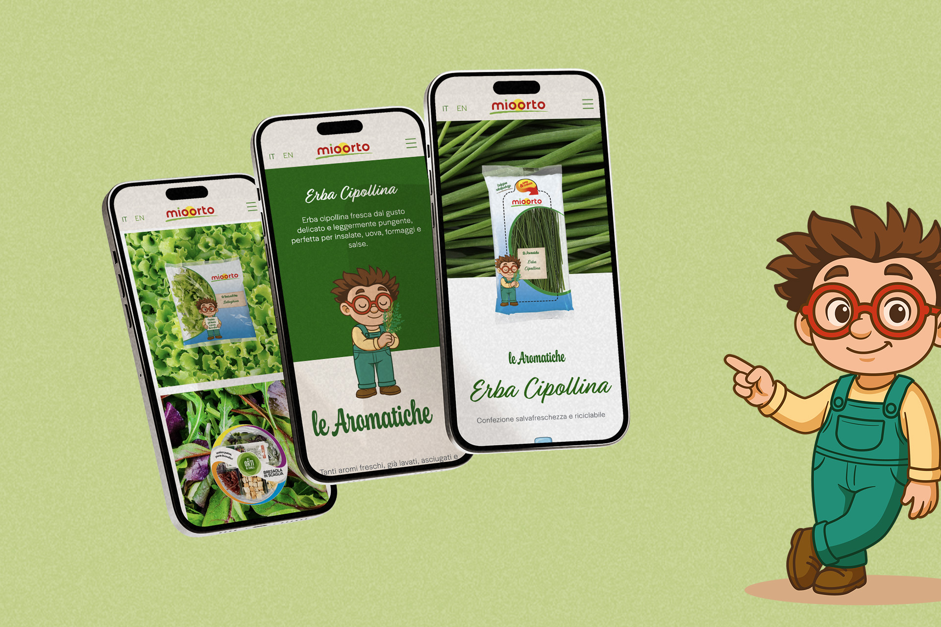 La mascotte di Mioorto è sempre stata un elemento centrale della comunicazione del brand: riconoscibile, rassicurante, legata all’immaginario dell’orto e del lavoro agricolo. Nel tempo, però, il contesto è cambiato: i canali e le aspettative del consumatore si sono evoluti.