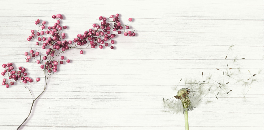Un soffione, un ramo di bacche di pepe rosa, un alito di vento. E nell’aria il sapere si diffonde.